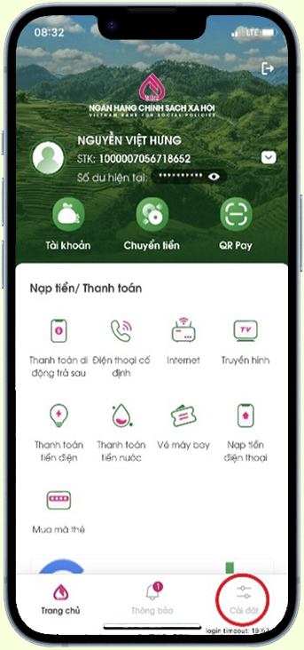 Nhấn chọn icon Cài đặt để vào Tab Cài đặt.