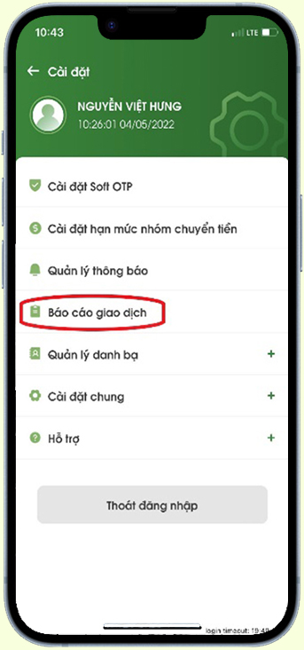 Nhấn chọn chức năng Báo cáo giao dịch
