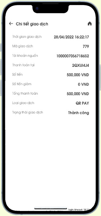 Nhấn chọn giao dịch để xem thông tin chi tiết giao dịch.