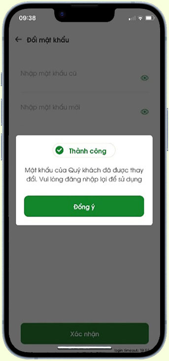Hiển thị thông báo đổi mật khẩu thành công.
