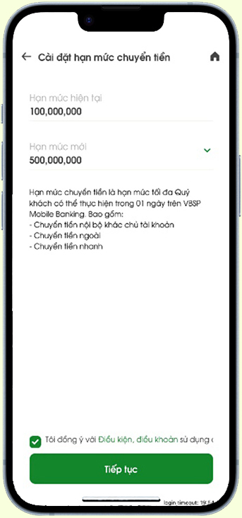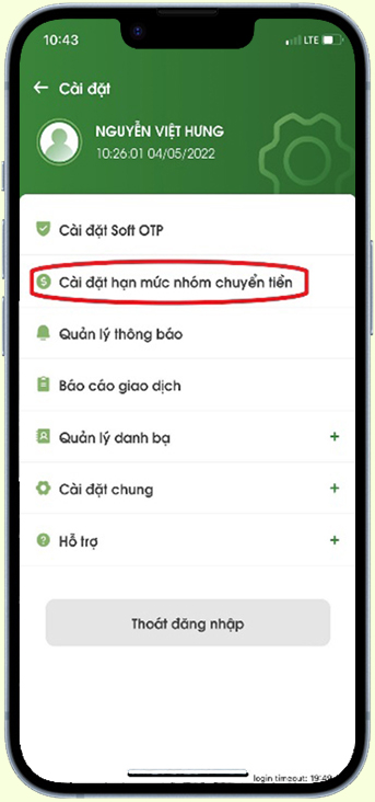 Nhấn chọn Cài đặt hạn mức chuyển tiền.