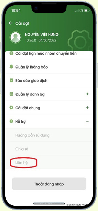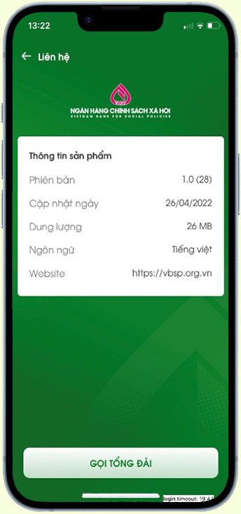 Ứng dụng hiển thị thông tin ứng dụng và liên hệ Ngân hàng.