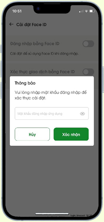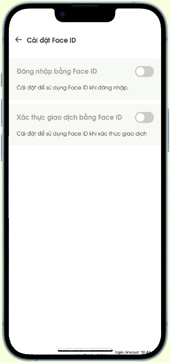Chọn Đăng nhập bằng face ID bằng cách gạt nút toggle