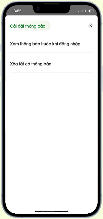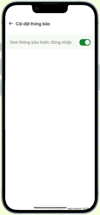 Khách hàng có thể cài đặt cho phép xem nội dung thông báo trước khi đăng nhập ứng dụng