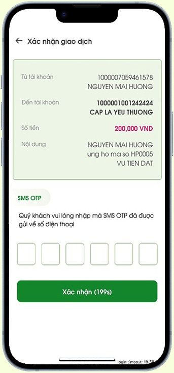 - Xác thực bằng SMS OTP: nhập mã OTP được gửi về số điện thoại của khách hàng