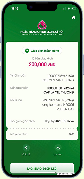 - Nhấn chọn Lưu ảnh: lưu ảnh kết quả giao dịch vào bộ nhớ của thiết bị