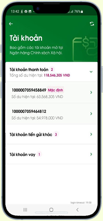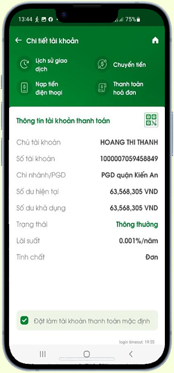 App hiển thị toàn bộ lịch sử giao dịch trong vòng 7 ngày của tài khoản thanh toán. Trường hợp muốn tìm