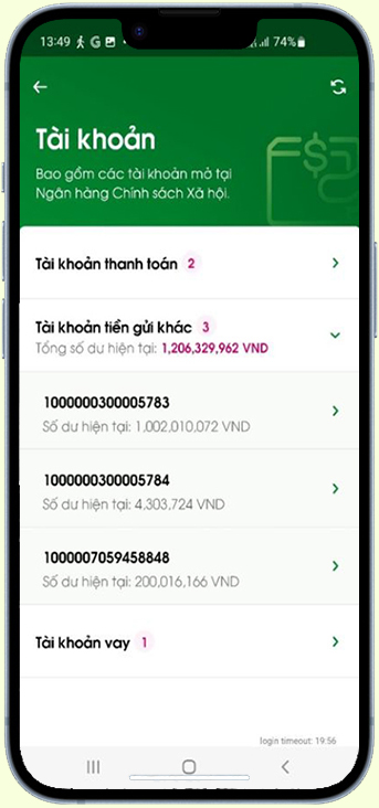 Click chọn tài khoản tiền gửi khác cần kiểm tra