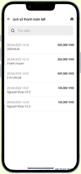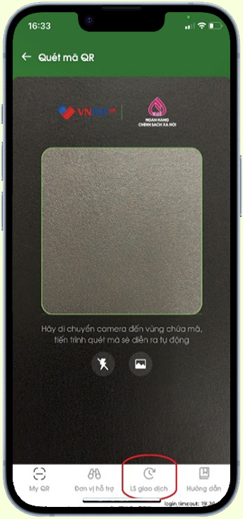 Nhấn chọn icon LS giao dịch QR
