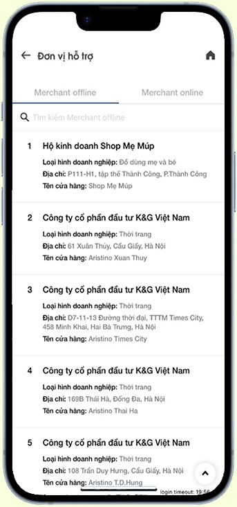 KH có thể tìm kiếm Merchant Offline và Merchant Online theo nhu cầu.