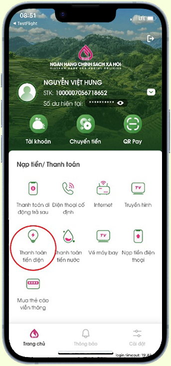 Bước 1: Truy cập chức năng Thanh toán tiền điện