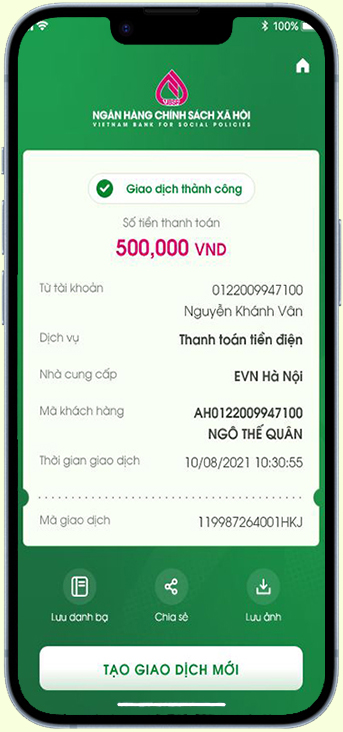 : lưu ảnh kết quả giao dịch vào bộ nhớ của thiết bị