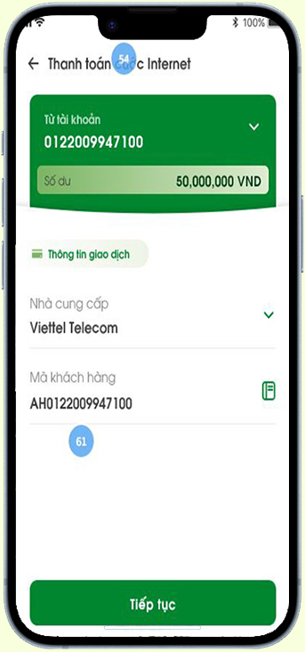 Nhập mã Khách hàng (Trường hợp đã lưu danh bạ, nhấn chọn icon
