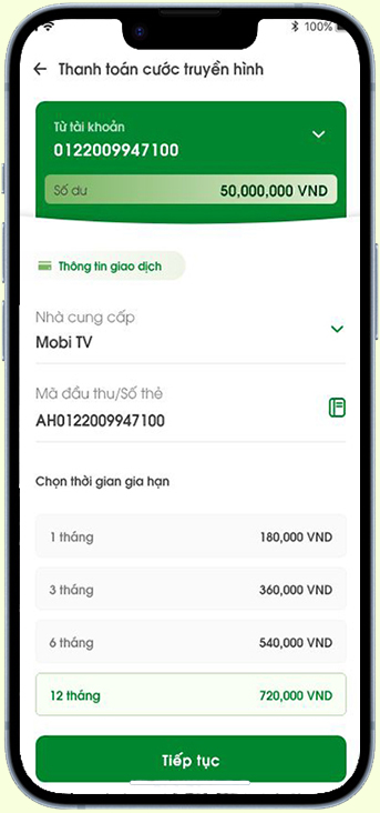 Xác thực giao dịch thành công -> hiển thị màn kết quả giao dịch thành công