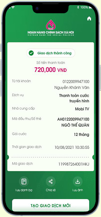 : lưu ảnh kết quả giao dịch vào bộ nhớ của thiết bị
