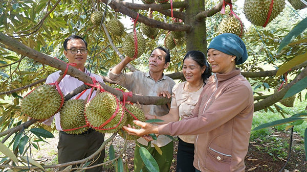 Mới đây, gia đình Cựu chiến binh hạng 3/4 Nguyễn Vũ Mão ở ấp 9, xã Lộc Điền, huyện Lộc Ninh, không chỉ ra khỏi danh sách hộ cận nghèo mà còn vươn lên khá giả với vườn sầu riêng hơn 2 ha Dona xanh tốt. Chia sẻ niềm vui, ông Mão cho biết: “Trước đây, cuộc sống rất khó khăn, nhà có 5 miệng ăn mà ruộng vườn thì ít. Khi được tiếp cận nguồn vốn giải quyết việc làm từ NHCSXH , tôi mạnh dạn chuyển đổi vườn tiêu già cỗi sang trồng sầu riêng. Hiện cây đã 6 năm tuổi, đang bước vào vụ thu hoạch thứ hai. Giá sầu riêng Dona tại vườn hiện dao động từ 40.000 - 60.000 đồng/kg. Dự kiến vụ này sẽ mang lại thu nhập không dưới 1 tỷ đồng. Thành quả hôm nay là nhờ vào đồng vốn từ NHCSXH”.