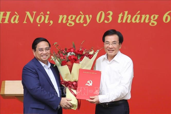Bí thư Đảng ủy Chính phủ, Thủ tướng Phạm Minh Chính trao quyết định Phó Bí thư Đảng ủy Chính phủ (nhiệm kỳ 2020 - 2025) cho ông Trần Văn Sơn, Bộ trưởng, Chủ nhiệm Văn phòng Chính phủ