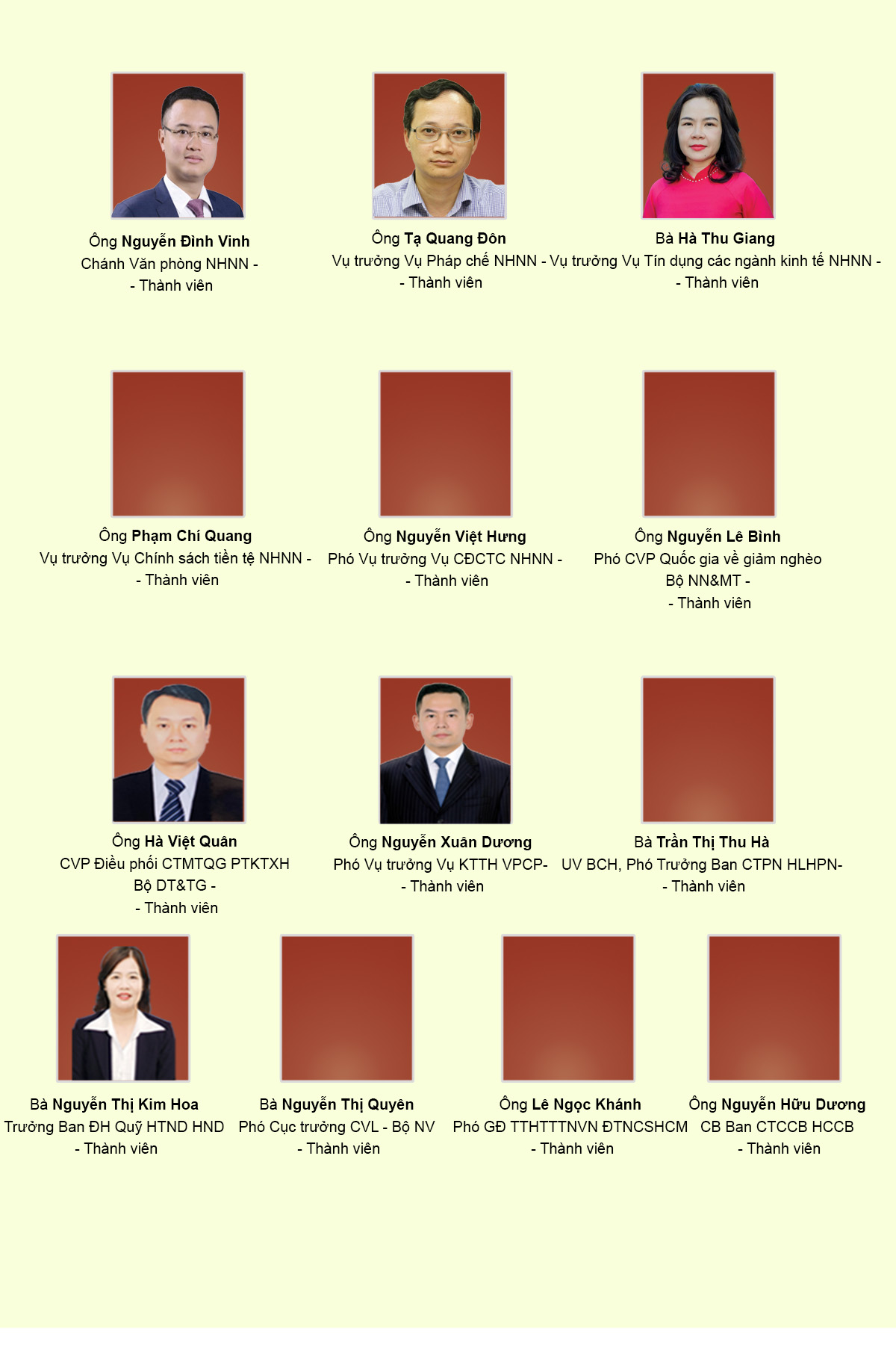 | 3 | BAN TÍN DỤNG NGƯỜI NGHÈO | Bà Lê Thị Phí Hà | Giám đốc |