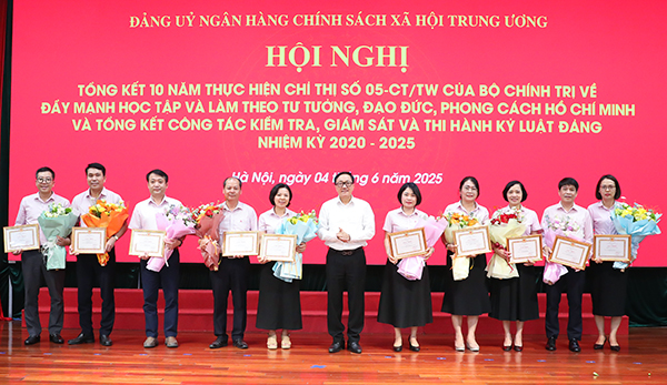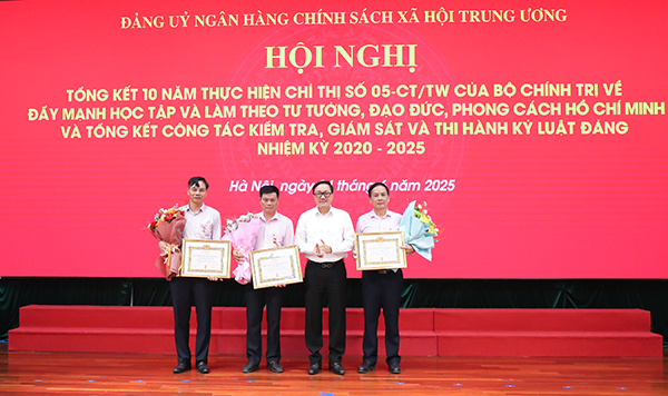 Nhân dịp này, Ban tổ chức hội nghị đã công bố các quyết định trao Huy hiệu 30 năm tuổi đảng cho 03 đồng chí đảng viên sinh hoạt tại Đảng bộ NHCSXHTW và quyết định khen thưởng của Đảng ủy NHCSXHTW cho các cá nhân, tập thể có thành tích xuất sắc trong “Học tập và làm theo tư tưởng, đạo đức, phong cách Hồ Chí Minh” giai đoạn 10 năm (2016 - 2025).