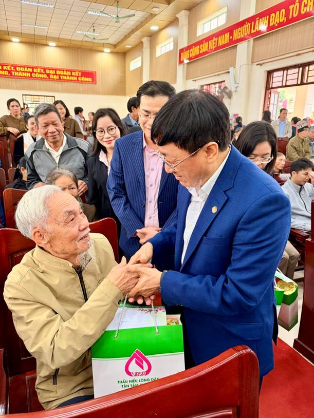 Tổng Giám đốc NHCSXH Dương Quyết Thắng trao quà Tết tại xã Kim Thành