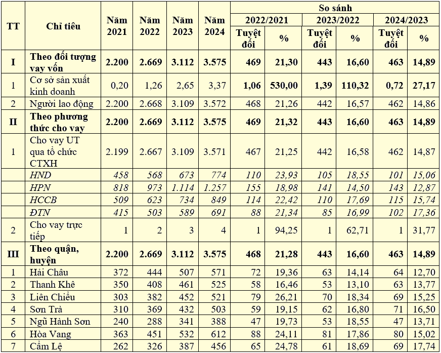 (Nguồn: Báo cáo hoạt động các năm 2021-2024 của CN NHCSXH TP Đà Nẵng)