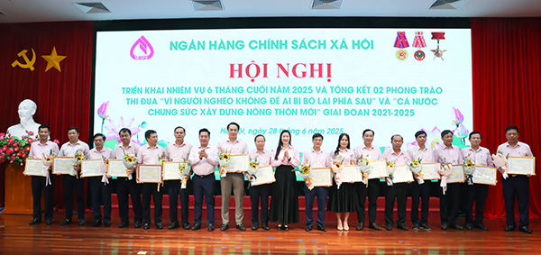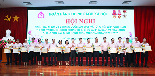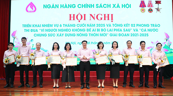 Hội nghị cũng đã tiến hành tổng kết 02 phong trào thi đua “Vì người nghèo không để ai bị bỏ lại phía sau” và “Cả nước chung sức xây dựng nông thôn mới” giai đoạn 2021-2025 trong đó khẳng định NHCSXH đã thực hiện tốt các chương trình chính sách tín dụng ưu đãi của Nhà nước thông qua các phong trào thi đua, đảm bảo 100% vốn tín dụng chính sách đến được với người nghèo và các đối tượng chính sách khác trên khắp cả nước, góp phần quan trọng trong việc: Thúc đẩy phát triển kinh tế - xã hội theo định hướng của Đảng và Nhà nước; tạo sự chuyển biến mạnh mẽ tại vùng nghèo, vùng đồng bào dân tộc thiểu số và miền núi; góp phần thu hẹp khoảng cách giữa các vùng trong cả nước và thực hiện các Chương trình mục tiêu quốc gia; bảo đảm an sinh xã hội, ổn định chính trị, trật tự xã hội, an ninh quốc phòng; phát triển nguồn nhân lực, giảm thiểu tác động của biến đổi khí hậu; tập hợp lực lượng, phát triển hội viên của các tổ chức chính trị - xã hội; tăng cường, củng cố niềm tin của nhân dân đối với Đảng, Nhà nước.