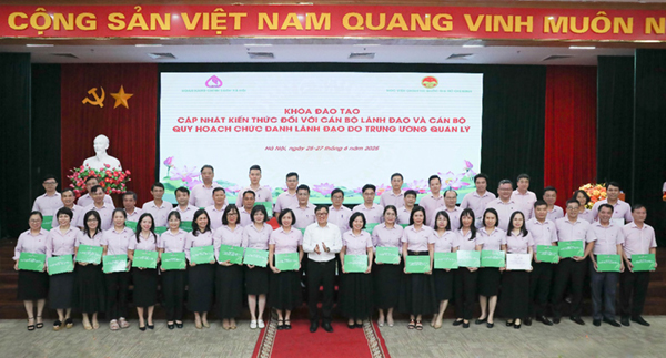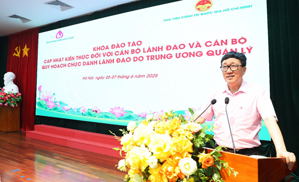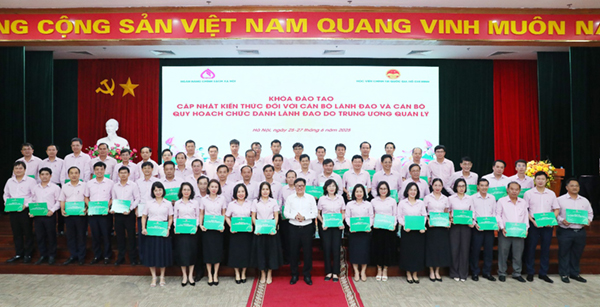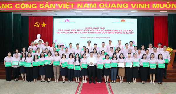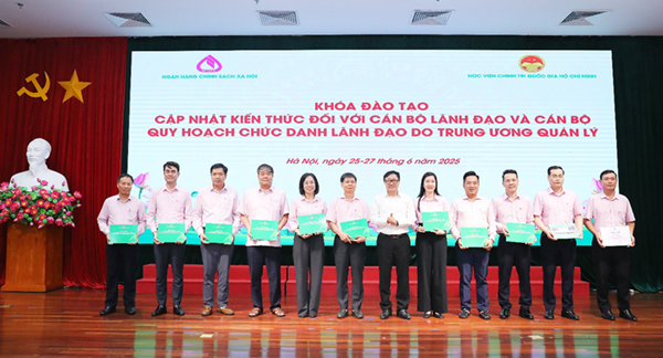 Khóa đào tạo cập nhật kiến thức đối với cán bộ lãnh đạo và cán bộ quy hoạch chức danh lãnh đạo do Trung ương quản lý chia thành 7 lớp học (03 ngày/lớp), từ tháng 6/2025 đến tháng 8/2025, với sự tham gia của 656 học viên nhằm bồi dưỡng, cập nhật kiến thức đối với đội ngũ lãnh đạo, quản lý trong nỗ lực không ngừng xây dựng đội ngũ cán bộ lãnh đạo, quản lý tại NHCSXH có tâm, có tầm, có trình độ chuyên môn nghiệp vụ đáp ứng yêu cầu của đất nước trong giai đoạn mới, tình hình mới của đất nước.