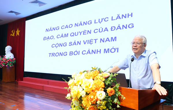 GS.TS Trần Văn Phòng - Nguyên Viện trưởng Viện triết học, Học viện Chính trị quốc gia Hồ Chí Minh truyền đạt nội dung về “Nâng cao năng lực lãnh đạo, cầm quyền của Đảng cộng sản Việt Nam trong bối cảnh mới”