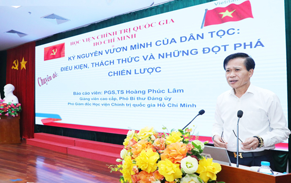 PGS.TS Hoàng Phúc Lâm - Phó Giám đốc Học viện Chính trị quốc gia Hồ Chí Minh truyền đạt nội dung về “Kỷ nguyên vươn mình của dân tộc Việt Nam: điều kiện, thách thức, và những đột phá chiến lược”