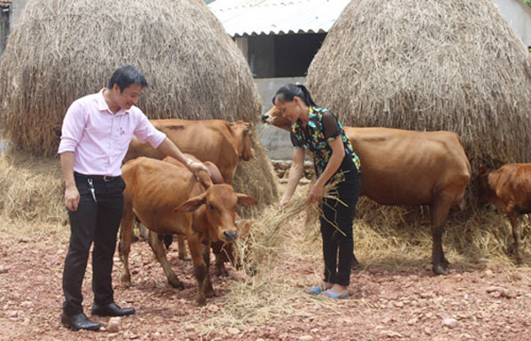 Nguyen Thi Duc's family in Huong Son district has been the poor household for many years. However, since she had access to VBSP's preferential capital, she invested in breeding cows, wild pigs and chickens, planting fruit trees such as oranges and pomelos. The number of her cows from just a few ones now has increased to 20.