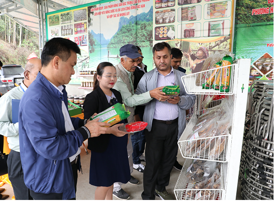 The delegation was introduced products sold in the market of the Nhung Luy cooperative in Ba Be district, Bac Kan province