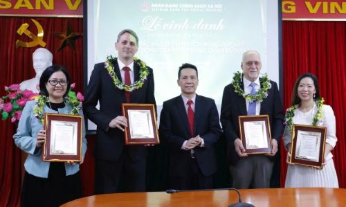 Deputy General Director Hoang Minh Te presented honorary plaques to individuals from The Asia Foundation for their outstanding contributions to VBSP