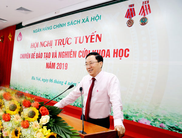 (VBSP News) On April 6, 2019, VBSP organized an online conference on training and scientific research. Attending the conference included Ph.D Duong Quyet Thang – General Director; Le Ngoc Bao - Chief of BOD’s Supervisory Committee; Deputy General Directors; Chairperson and Vice Chairpersons of Trade Union; Chief and Deputy Chiefs of Office; Directors, Deputy Directors of Operational Departments at the Head Office, Training Center, IT Center, Transaction Center and 62 provincial and municipal branches.