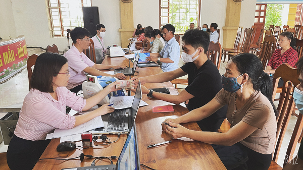 VBSP staff transact with customers at commune transaction point in Thanh Liem District, Ha Nam province