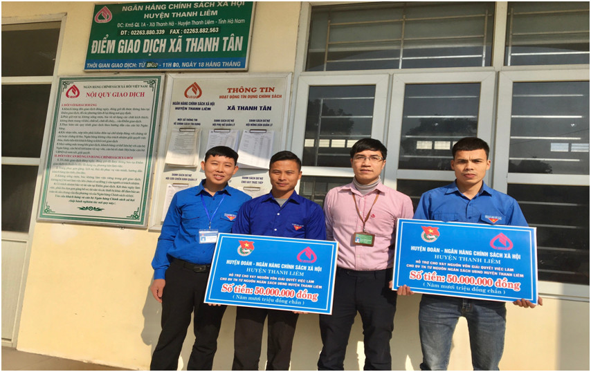 Ha Nam provincial branch - VBSP support preferential loans for start-up youth at the transaction point, Thanh Tan commune, Thanh Liem district