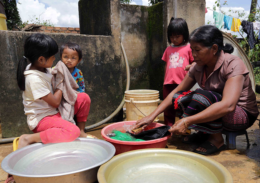 Thanks to the rural safe water and sanitation program, Mr. Kokk's family, in Dak Glong district, Dak Nong province has accessed to clean water and hygienic toilets
