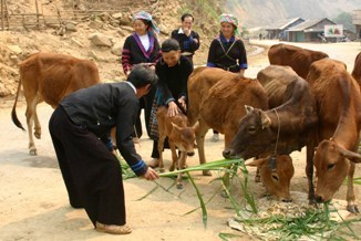 Mr. Giàng A Dua in Hồng Ngài hamlet, Hồng Ngài commune of Bắc Yên township, Sơn La province). After over three years, his family has got away from poverty thanks to effective investment with very few initial million dongs. Therefore, he earns from VND 50 to 80 million from moe than 30 goats, cows and horses every year.